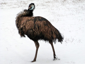 Голова, шея и горло у него темно-серые со светло-серым штриховым рисунком, белыми пятнами и полосками; оперение крыльев и спины каштаново-бурое с черным волнистым рисунком, на конце перьев - с небольшими блестящими голубыми округлыми пятнами; маховые черные, надхвостье каштаново-бурое с крупными каштаново-бурыми и черными крапинками; хвост из 20 рулевых перьев с закругленными кончиками, черного цвета и со светло-коричневыми пятнами, средние рулевые перья без пятен, с металлическим блеском. Длина самца 65, самки 46 см.