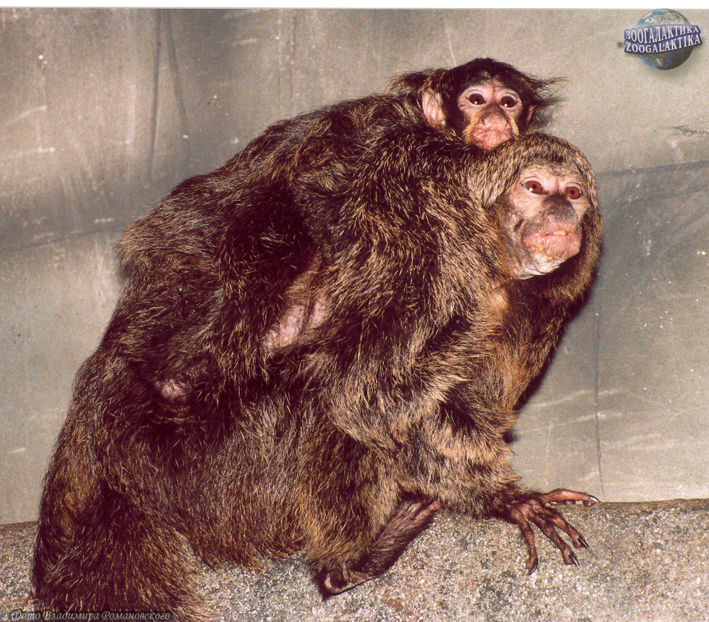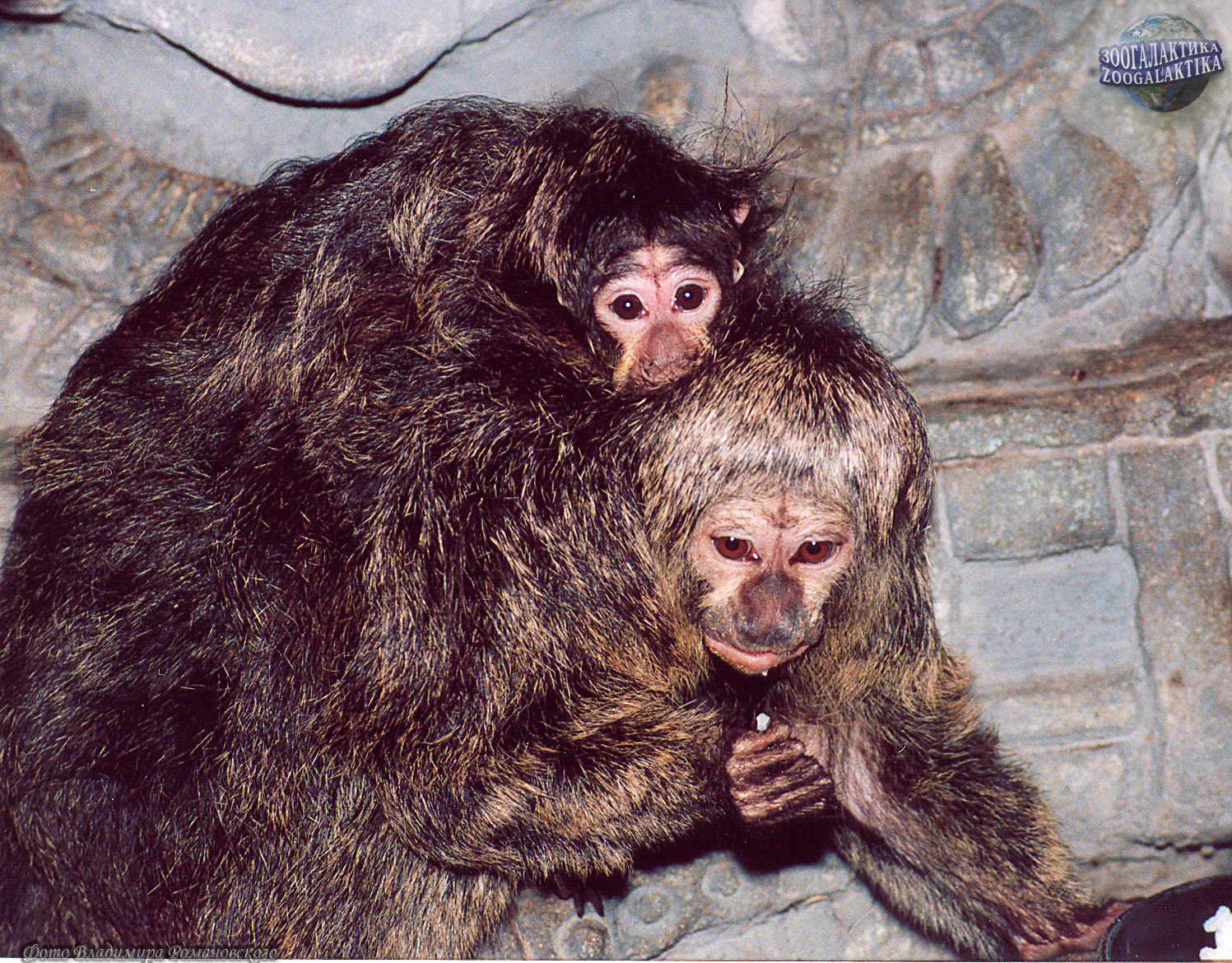 Живут эти обезьяны парами или небольшими семейными группами по 2-5 животных. После 163-167-дневной беременности у самки рождается 1 детеныш, которого она носит сначала на животе, возле груди, а затем на спине.