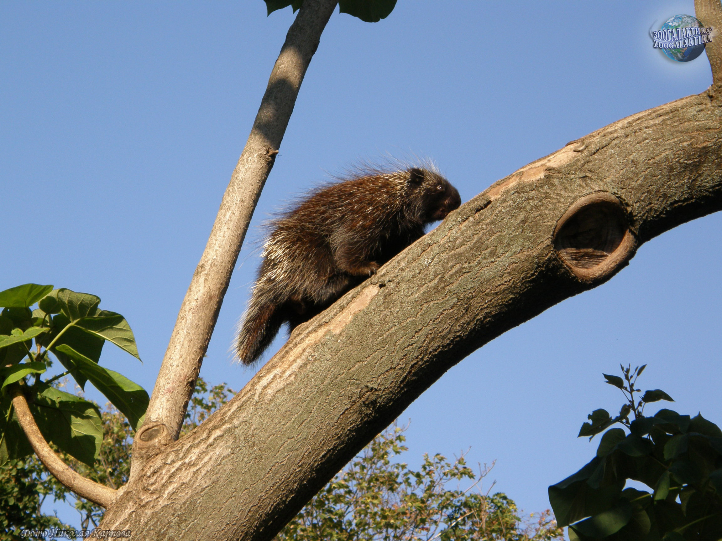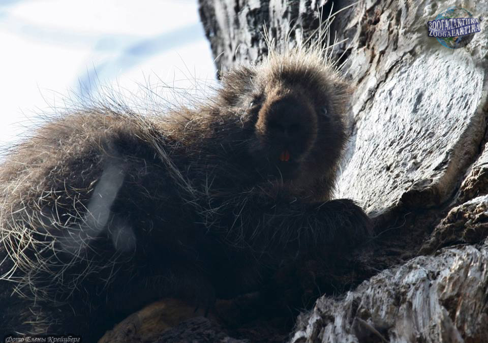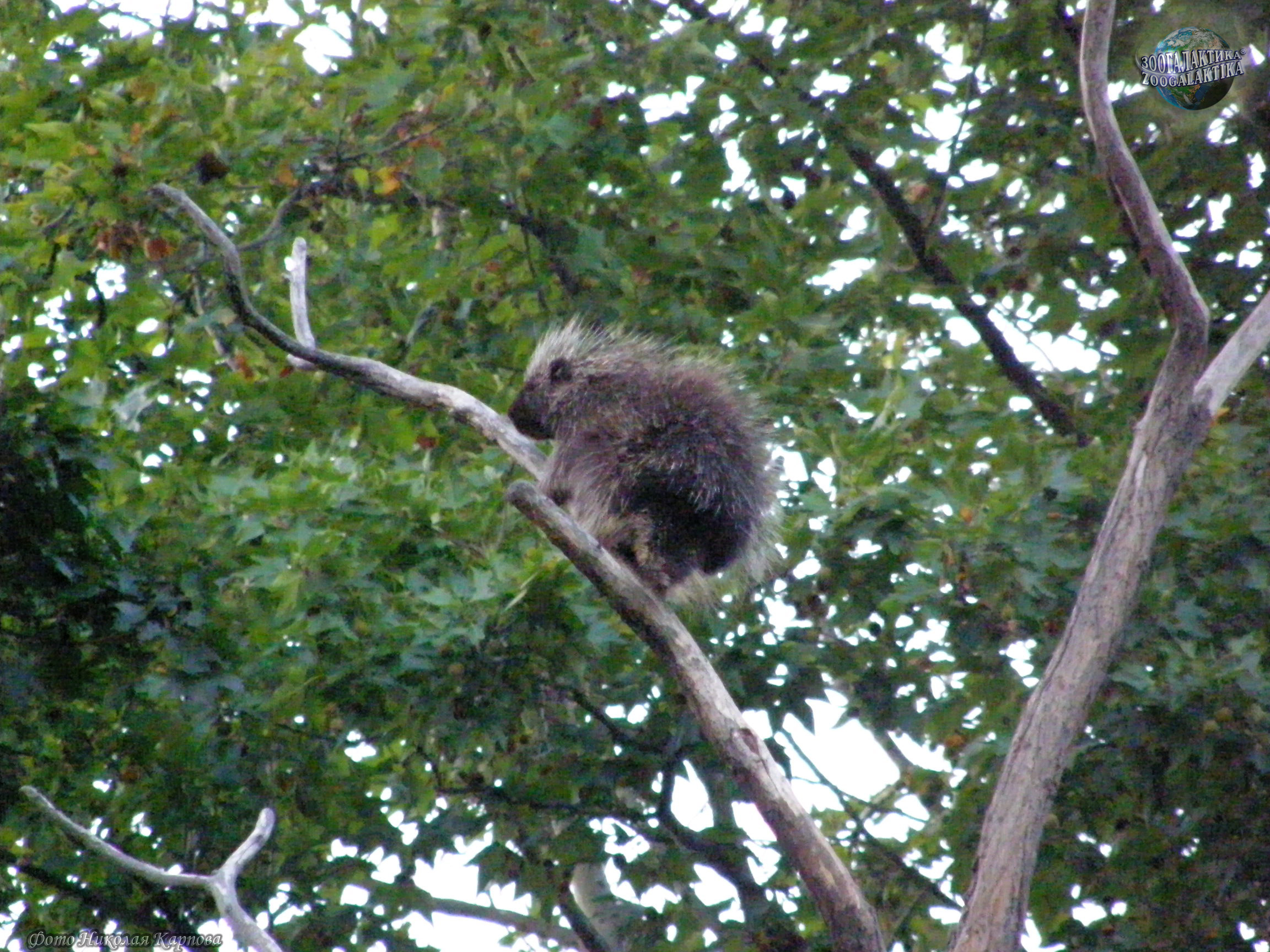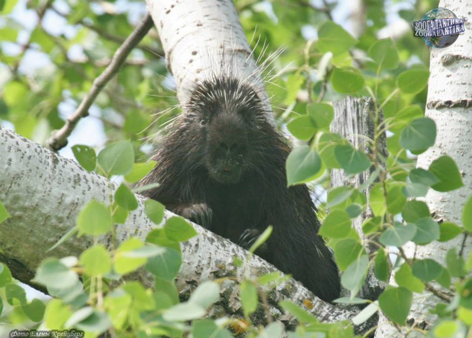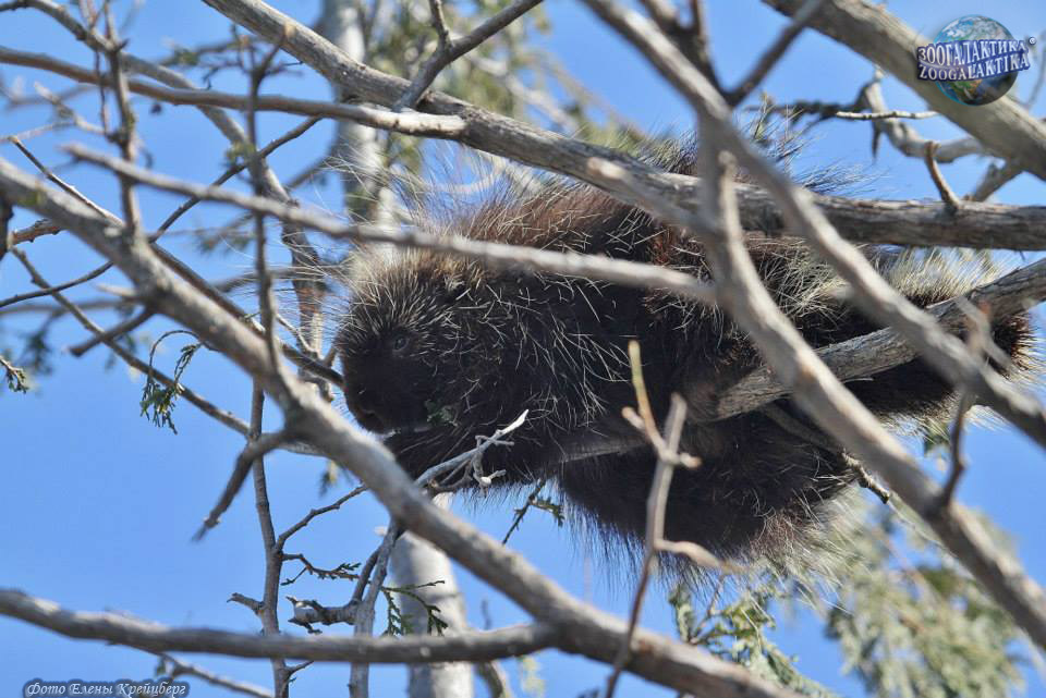 Поркупин хорошо приспособлен к жизни на деревьях - благодаря длинным и острым когтям он хоть и медленно, но уверенно лазает по стволу и ветвям. Распространен поркупин в лесных районах Северной Америки от Аляски до Мексики. Он предпочитает сосновые и осиновые леса, но встретить его можно в самых разных ландшафтах - от тундры до полупустыни. В разных районах поркупины могут жить как преимущественно на деревьях, так и логовах, забираясь на деревья только для кормления. То, сколько времени они проводят на земле, зависит от количества хищников и плотности «съедобной» наземной растительности в районе. Эти дикобразы ведут преимущественно одиночный образ жизни, хотя зимой они могут селиться по нескольку особей в одном убежище и кормиться группами до 20 особей. Поркупины активны весь год, но преимущественно по ночам. Питаются древесные дикобразы всеми видами растительной пищи - корой, желудями и орехами, молодыми листьями, травами и, особенно охотно, яблоками. Часто по нескольку дней зверек грызет одно и то же дерево (например, сахарный клен). Питание поркупина сильно различается в разные сезоны года. В теплое время года пищей ему служат травянистая растительность, корнеплоды и фрукты, цветы и нежные молодые листья деревьев. Осенью и зимой поркупин поедает почки на ветвях и кору деревьев, вернее - тонкий, но сочный слой под корой, содержащий крахмал и сахар, причем отдает предпочтение кленам, тополям и елям. Снимать кору со стволов ему помогают мощные и острые когти. Поркупин - довольно крупный грызун: длина его тела колеблется от 64 до 86 см, толстый достигает длины в 30 см. Голова у этого грызуна небольшая, ноги короткие. Несмотря на неуклюжесть, зверек хорошо плавает.