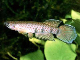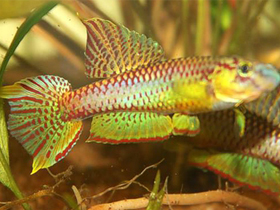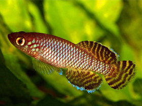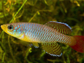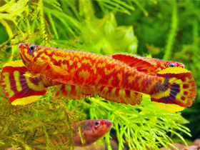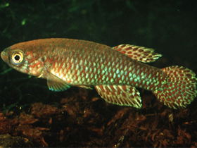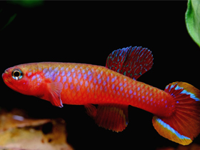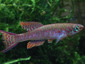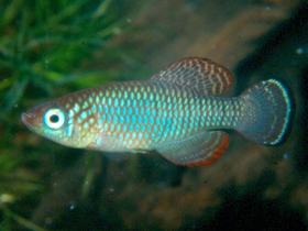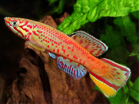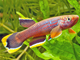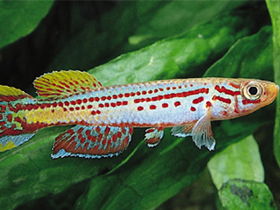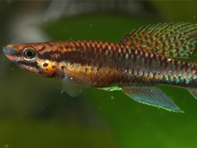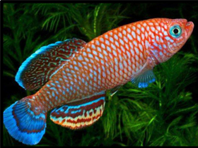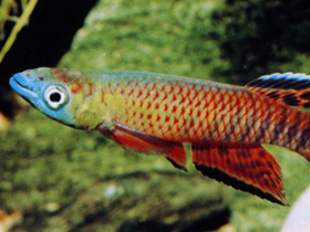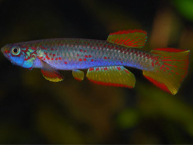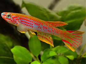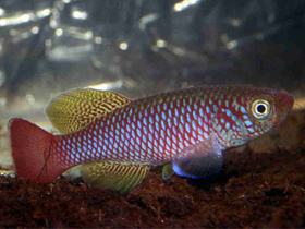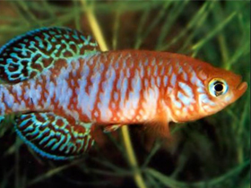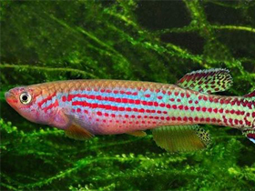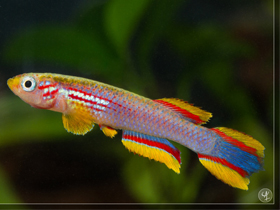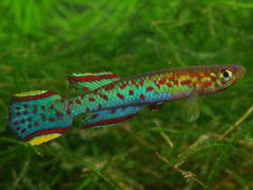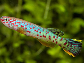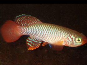Красочный представитель семейства карпозубых, обитающий во временных, пересыхающих в период засухи водоёмах Танзании.