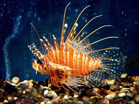 Скорпеновые имеют крупное, массивное тело, длиной от 4 до 90 см, большую голову обычно с гребнями или колючими выростами и крупные глаза. Спинной плавник этих рыб разделён выемкой на две части, передняя из которых несёт множество длинных твердых лучей. Характерная черта всех скорпеновых – наличие ядовитых желез в основании колючих лучей спинного и анального плавников, в костных выростах жаберных крышек и головы. Яркая пестрота их окраски не только предупреждает врагов о наличии ядовитых игл, но и маскирует их на фоне разноцветья коралловых рифов. Преобладающими цветами являются красный и красно-коричневый, они часто сочетаются как между собой, так и с белым. Рисунок обычно очень сложный, состоит из сочетания контрастных полос и пятен. Все скорпеновые – прожорливые хищники, питаются они в основном рыбами и ракообразными. Во время охоты плавное движение рыбы сменяется стремительным броском. Вееровидные грудные плавники выполняют функцию загонного устройства, в которое попадает жертва. Скорпеновые довольно сообразительны: они быстро привыкают к людям, которые их кормят, и узнают их даже в полуметре от аквариума.