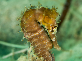 Интересны особенности биологии размножения морских коньков. В нижней части брюшка самец имеет выводковую сумку, куда самка с помощью своего яйцеклада вводит икринки. В сумке они оплодотворяются и вызревают, полностью защищенные от внешней среды. Когда личинки готовы к вылуплению, самец с усилием изгибается и порциями выдавливает их из сумки.
